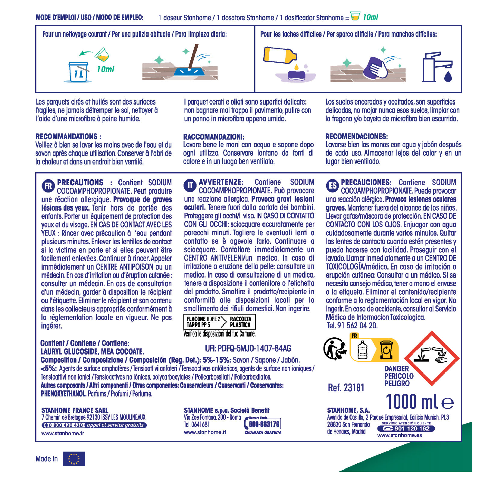 Thông số kỹ thuật Nước Lau Sàn Gỗ Đậm Đặc Stanhome Parquet Cleaner (1000ml)