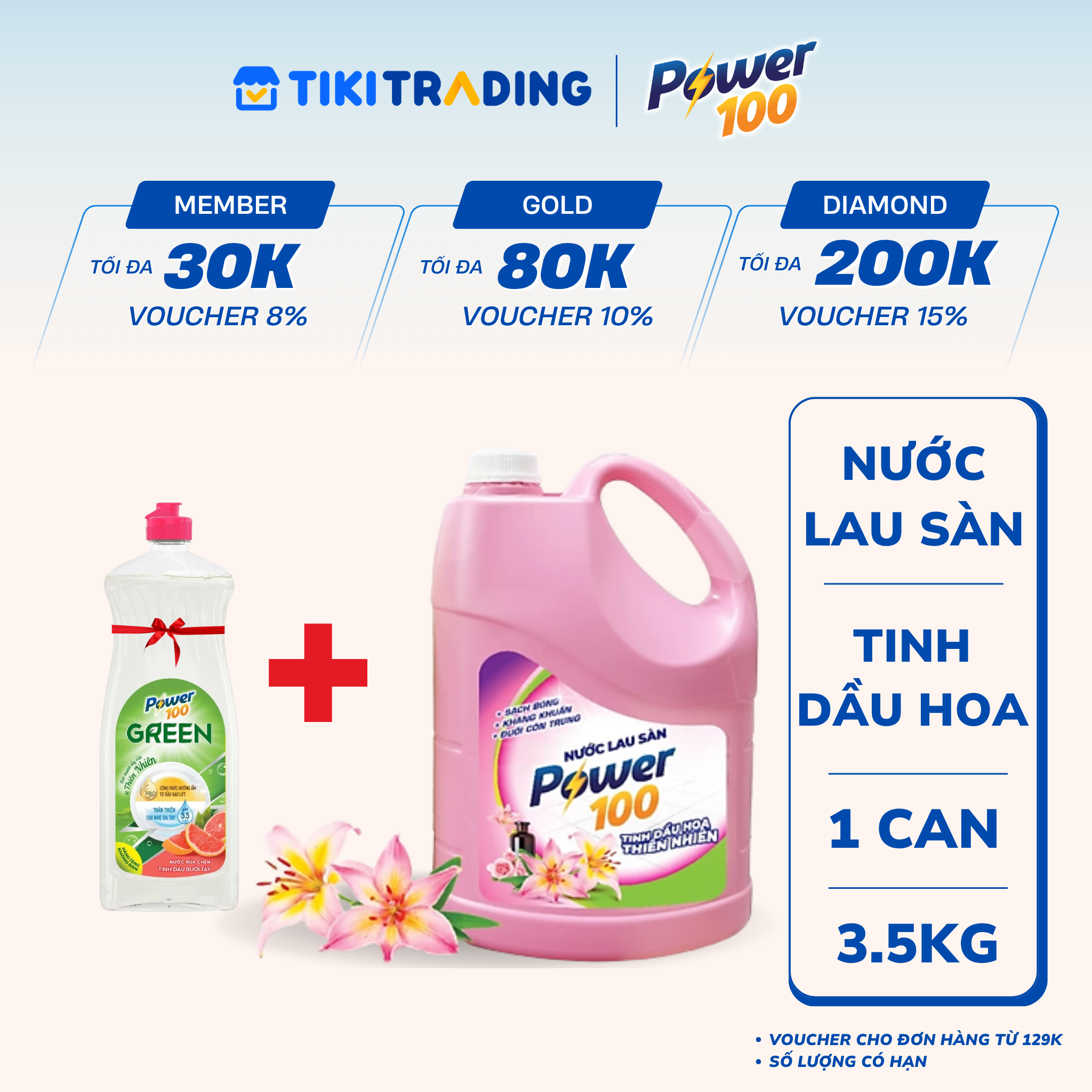 - Nước Lau Sàn POWER100 Hương Hoa Thiên Nhiên 3,8kg được phát triển bởi công nghệ đột phá với sức mạnh làm sạch vượt trội, không chứa hóa chất độc hại, an toàn cho sức khỏe và thân thiện với môi trường