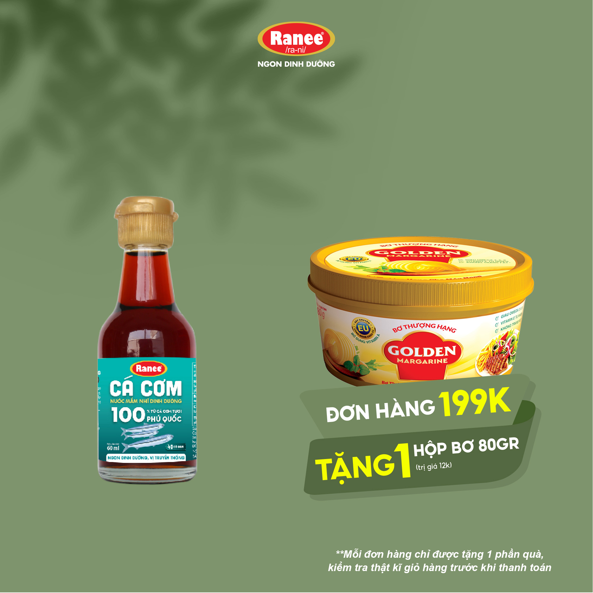 Thông số kỹ thuật {Đơn 199k tặng hộp bơ 80g} Nước mắm dinh dưỡng Ranee cá cơm vị truyền thống 40 độ đạm chai 60ml ( 1 chai x 60ml)