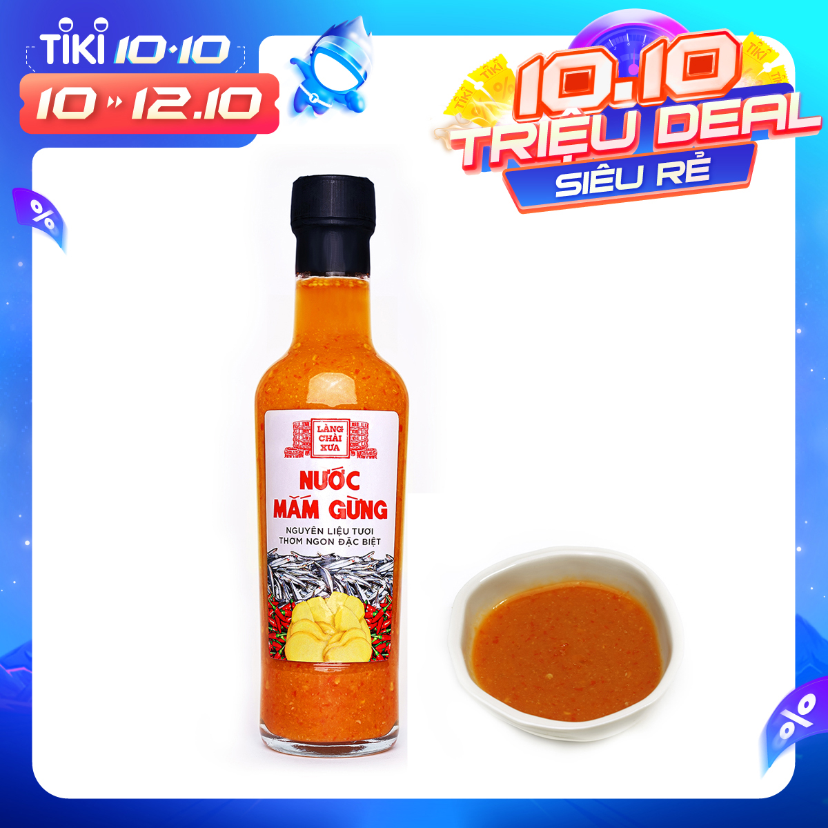 * NƯỚC MẮM GỪNG PHA SẴN CAO CẤP LÀNG CHÀI XƯA, NGUYÊN LIỆU TƯƠI, THƠM NGON ĐẶC BIỆT TỪ GỪNG, TỎI, ỚT TƯƠI, CHAI THỦY TINH