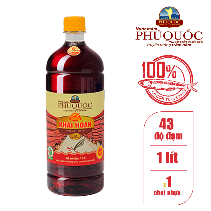 Thông số kỹ thuật Nước mắm Khải Hoàn Phú Quốc chai nhựa 1lit 43 độ đạm