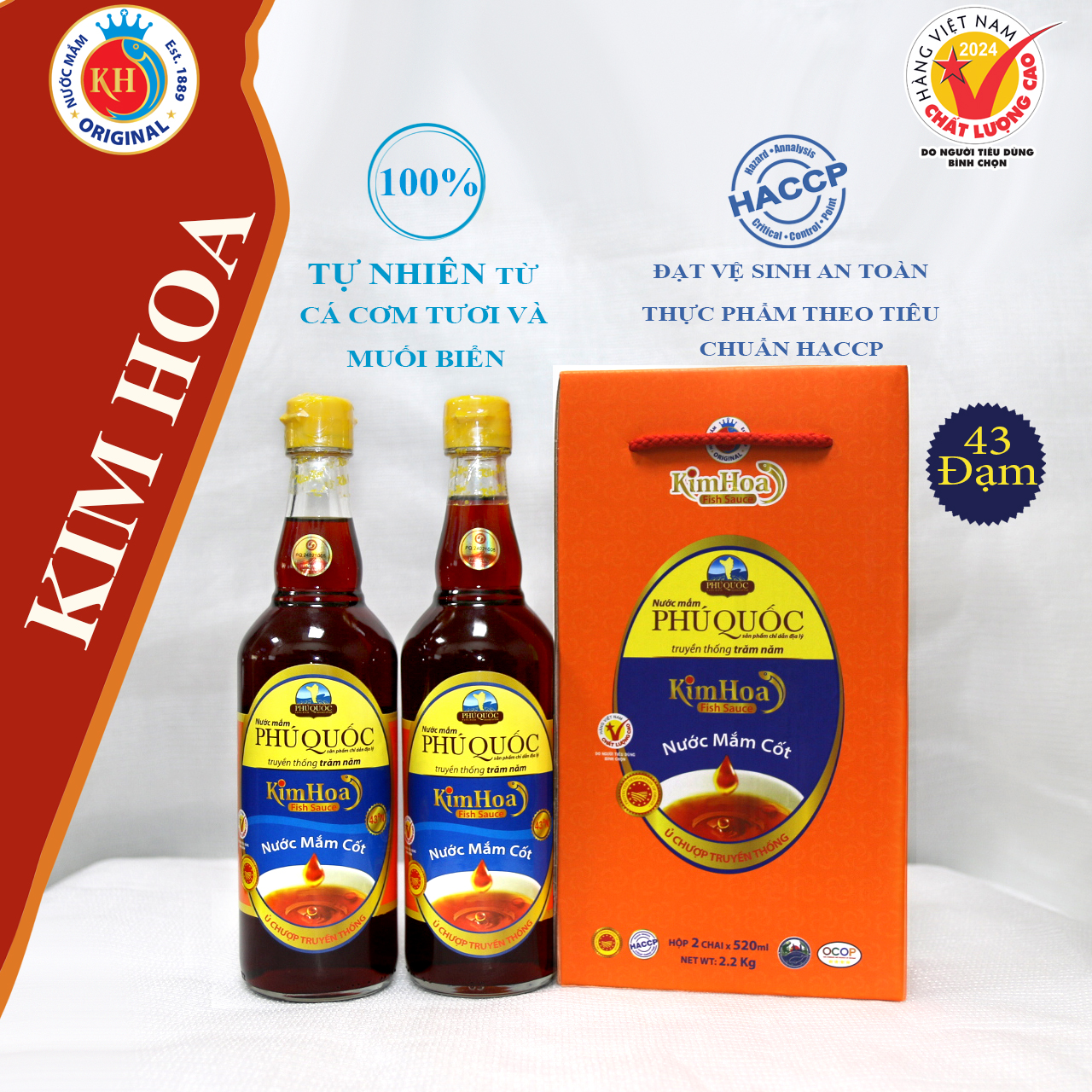 Thông số kỹ thuật Nước Mắm Kim Hoa Phú Quốc 43 độ đạm hộp 2 chai 520ml - mỗi chai 520ml