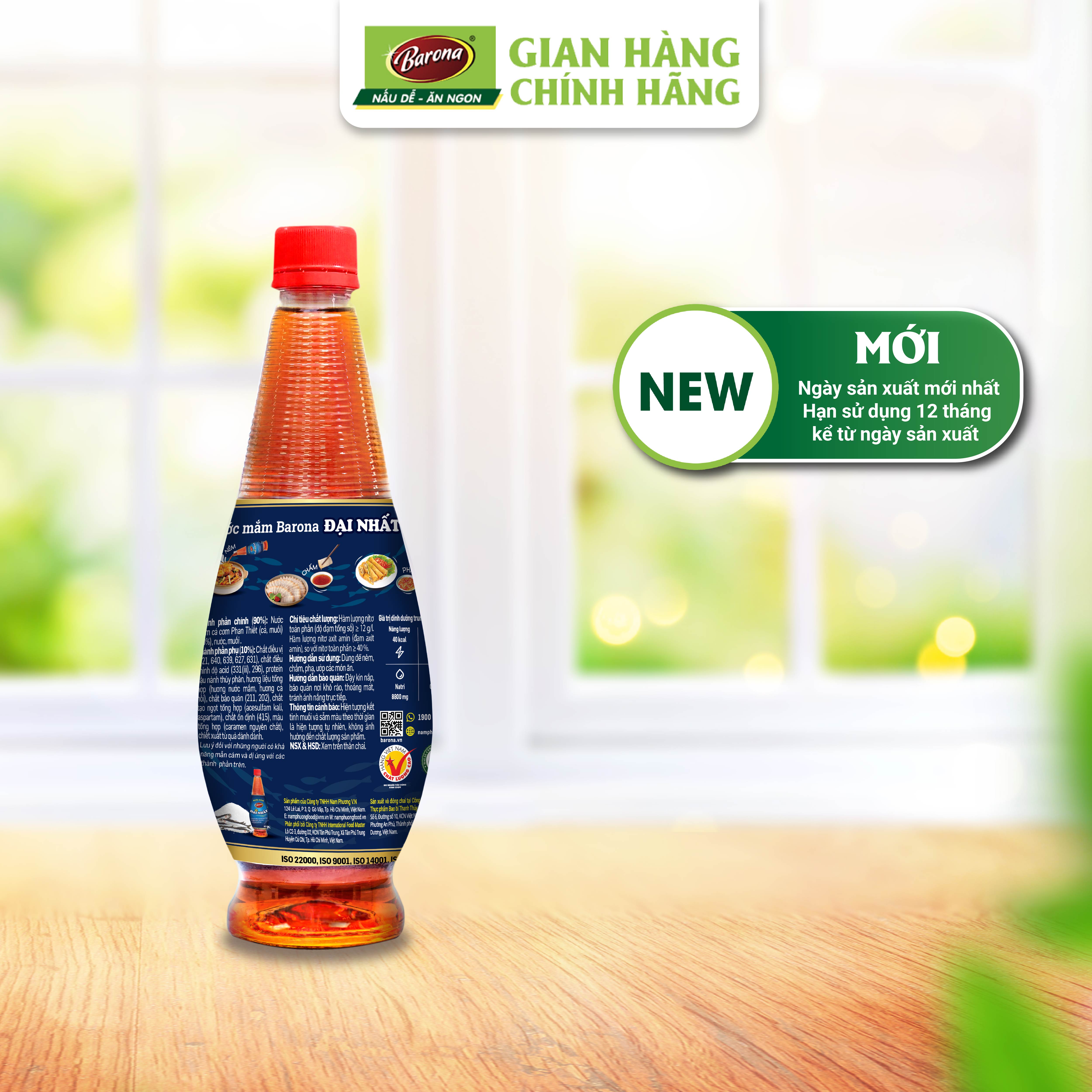 Nước mắm Barona Đại Nhất thơm ngon hơn với nguồn nước mắm được ủ chượp tại nhà thùng Phan Thiết, kết hợp công nghệ thanh trùng đảm bảo an toàn. Đặc biệt sản phẩm đạt tiêu chuẩn xuất khẩu Châu Âu là sự lựa chọn tuyệt vời dành cho gia đình bạn.