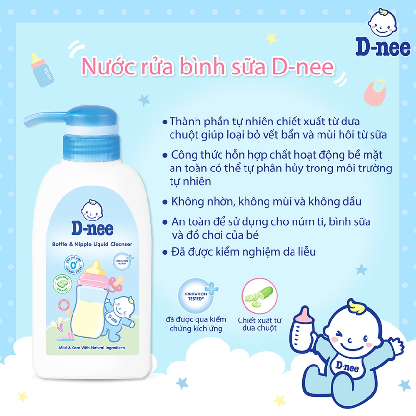 Thông số kỹ thuật Nước rửa bình sữa D-nee Mild & Care chai 500ml