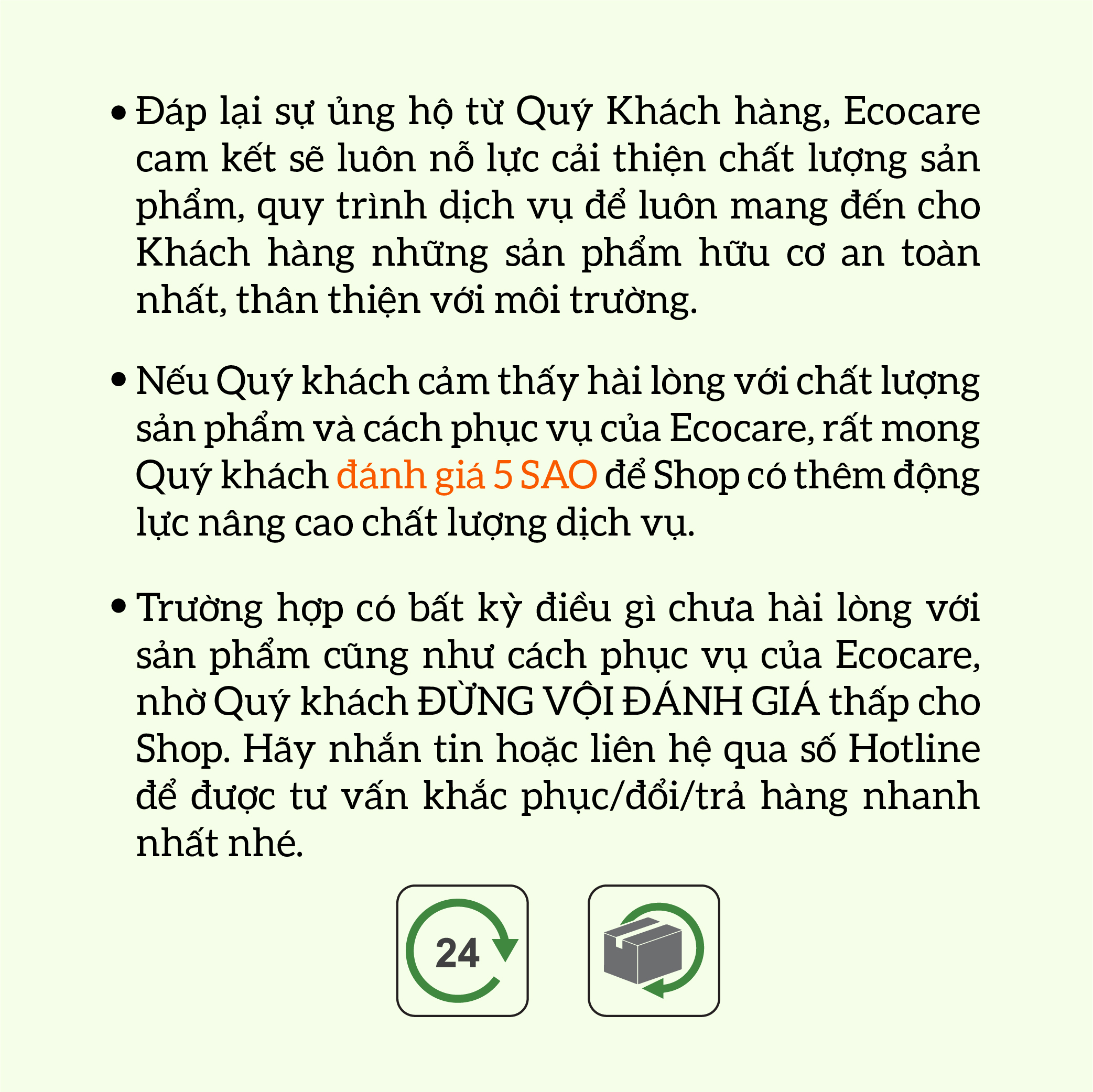 - Sản phẩm Ecocare cam kết:
