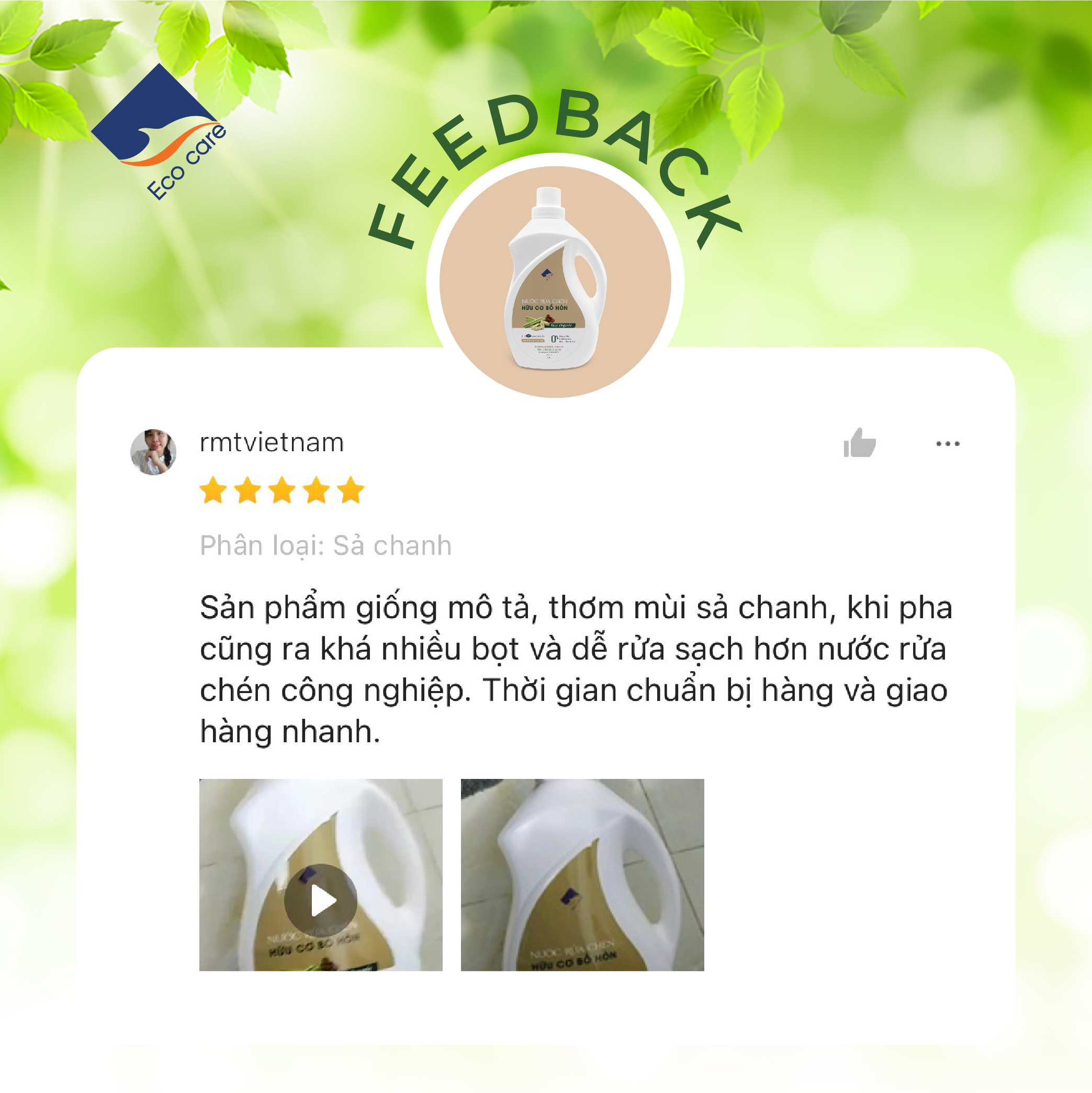- Trước tiên, Công ty Ecocare xin cảm ơn Quý Khách hàng đã tin tưởng lựa chọn sản phẩm Nước rửa chén hữu cơ Bồ hòn tinh dầu Sả Chanh 2000ml