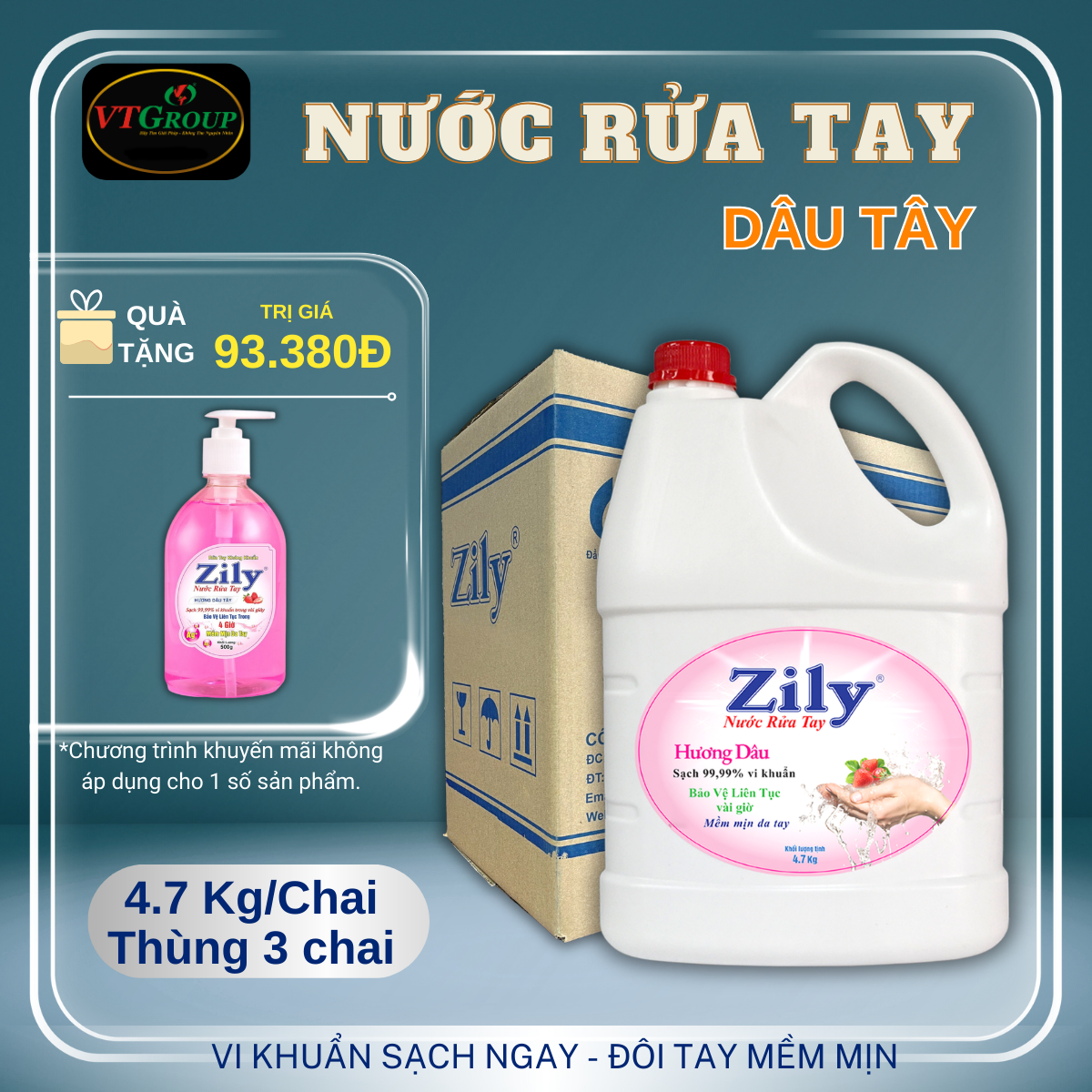 Thông số kỹ thuật Nước rửa tay Zily chai 4.7Kg ( 3 chai/ thùng ) - Tặng 1 Chai Nước Rửa Tay Zily 500Gr