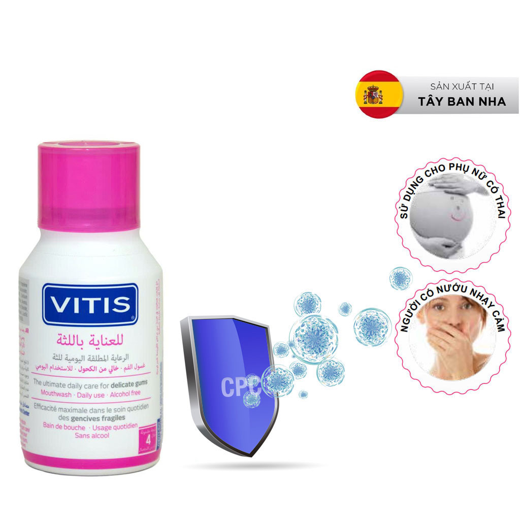 Thông số kỹ thuật Nước súc miệng ngăn ngừa mảng bám dành cho nướu nhạy cảm Vitis Healthy Gum 150ml-500ml (dùng được cho phụ nữ mang thai)