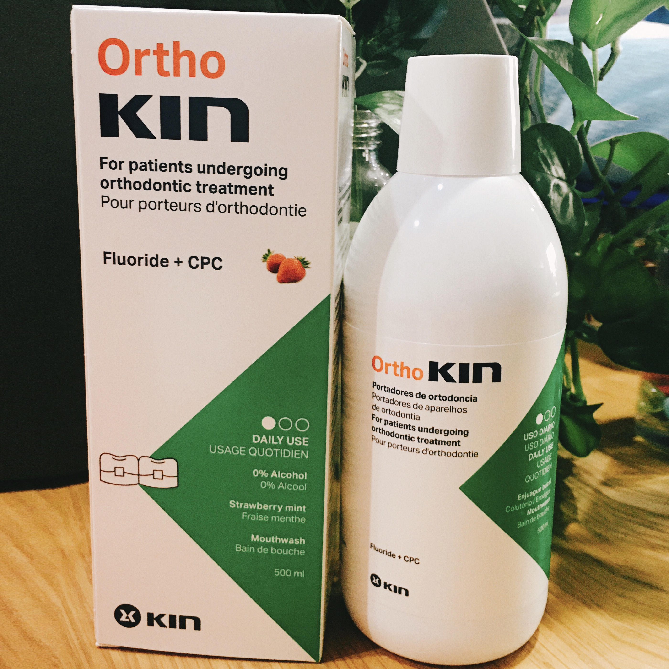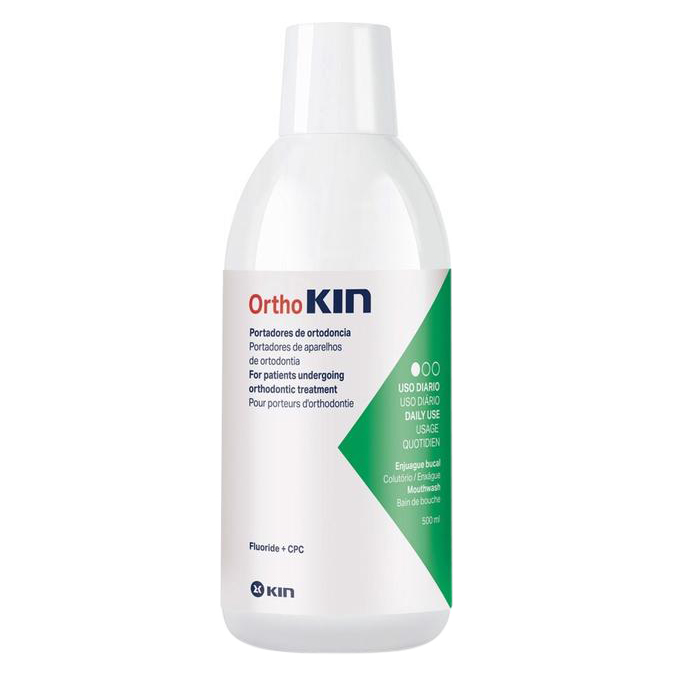 NƯỚC SÚC MIỆNG CHUYÊN DỤNG DÀNH CHO RĂNG CHỈNH NHA ORTHO KIN CHỨA FLUORIDE, CPC CÙNG CÁC KHOÁNG CHẤT BỔ SUNG CHO RĂNG VÀ NƯỚU CHẮC KHỎE CÙNG HƠI THỞ THƠM MÁT VỊ DÂU TÂY HÒA QUYỆN CÙNG HƯƠNG BẠC HÀ MÁT LẠNH CHO BẠN SỰ TỰ TIN TUYỆT ĐỐI DÙ ĐANG ĐEO MẮC CÀI.