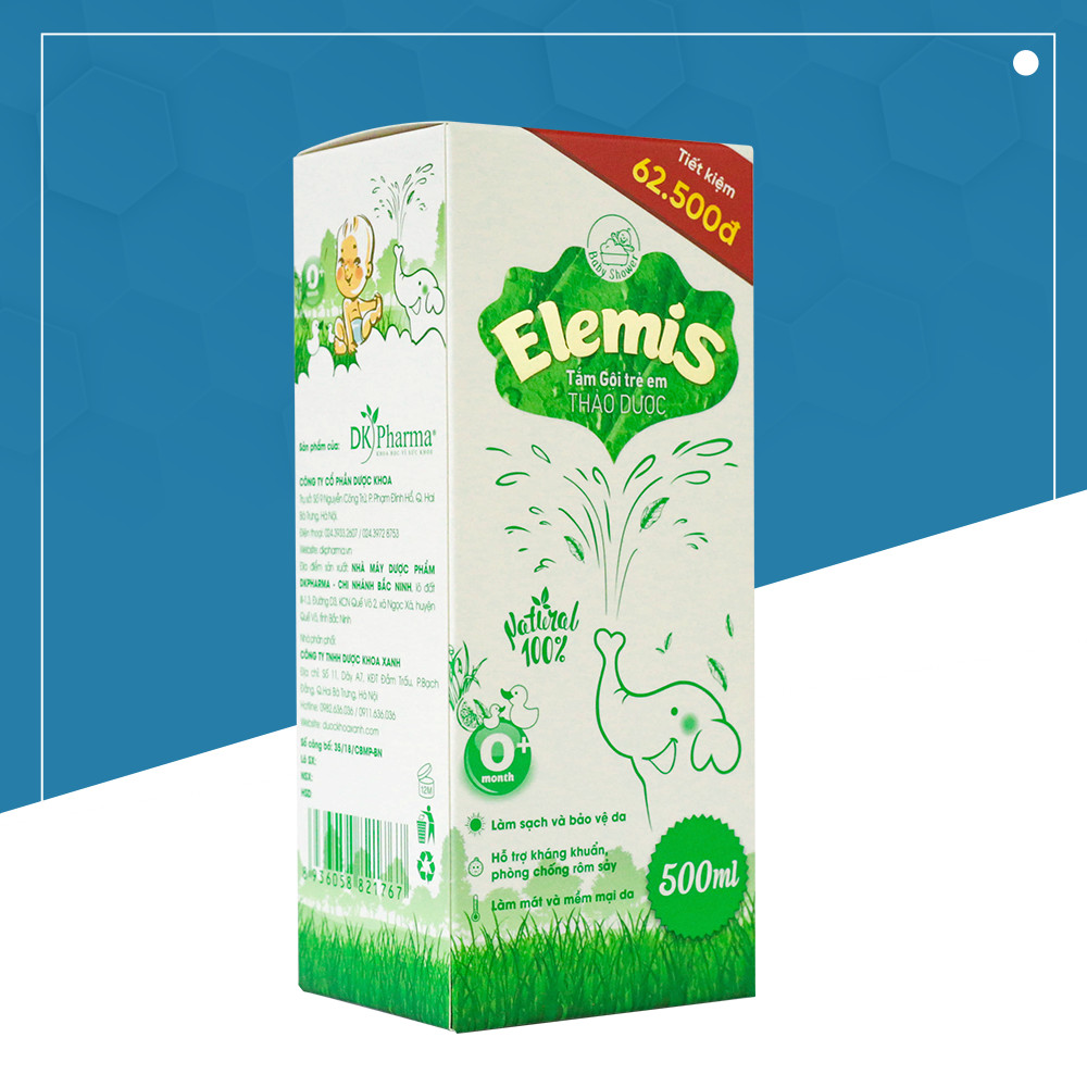 - Sữa tắm cho bé Elemis 500ml được phát triển từ các nghiên cứu khoa học cấp nhà nước của các nhà khoa học thuộc bộ môn Thực Vật – trường Đại học Dược Hà Nội, được kiểm định và thử nghiệm qua những nghiên cứu lâm sàng để chứng minh tác dụng và độ an toàn trước khi đưa vào sản xuất.