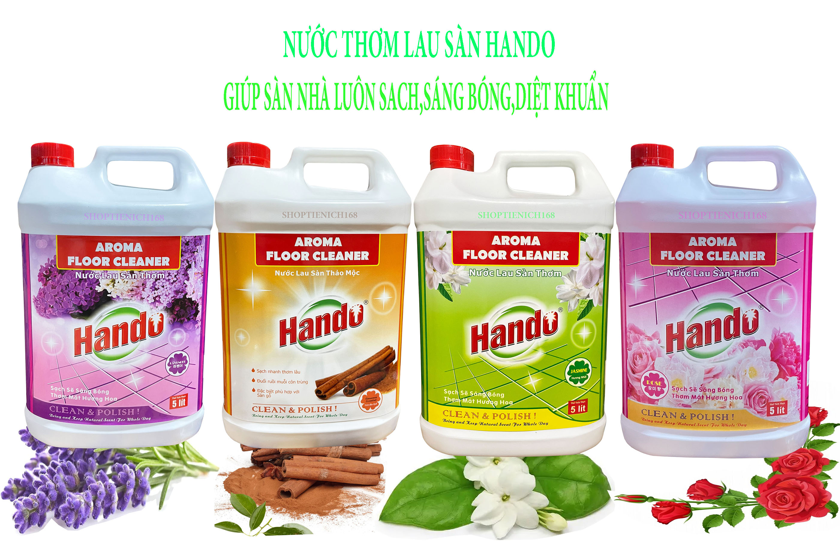 Với công thức hoàn toàn mới, Nước thơm lau sàn nhà Hando giúp làm sạch bóng sàn nhà, đánh sạch vết bẩn và bụi bám ở mọi ngóc ngách, diệt vi khuẩn hữu hiệu bảo vệ sức khỏe cho cả gia đình. Không chỉ có công dụng làm sạch sàn nhà, đánh tan mọi vết bẩn, Nước thơm lau sàn nhà Hando với mùi hương chiết xuất từ thiên nhiên sẽ tạo bầu không khí dễ chịu, thơm mát. Sản phẩm sử dụng hiệu quả cho mọi loại sàn nhà đồng thời dùng được cho các bề mặt khác như mặt bếp, bồn rửa, nhà tắ