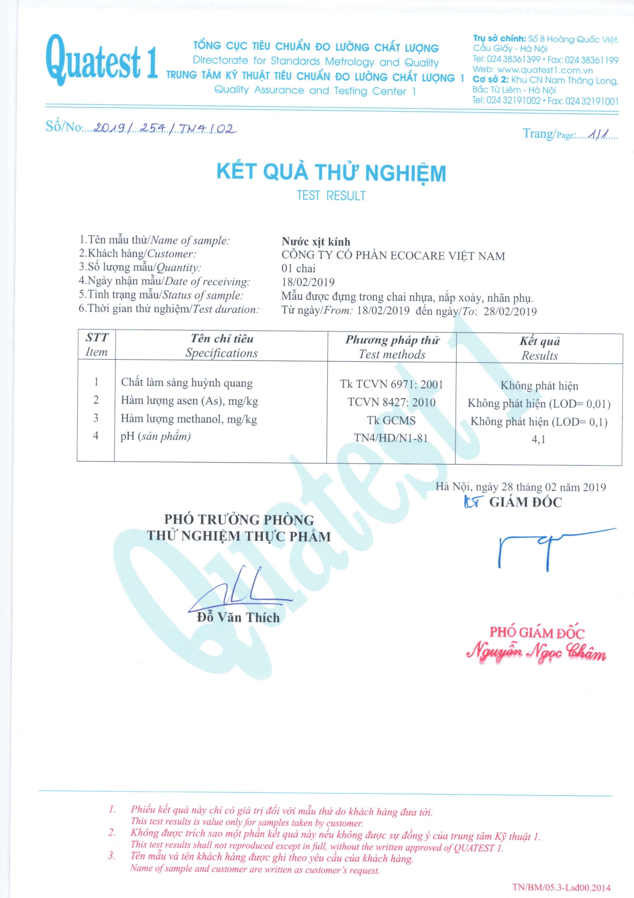 Giấy chứng nhận của cơ quan kiểm định Intertek thuộc Vương Quốc Anh, giấy chứng nhận Trung tâm Kỹ thuật Tiêu chuẩn Đo lường Chất lượng 1 (QUATEST 1)