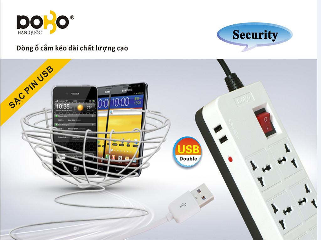 Thông số kỹ thuật Ổ Cắm Dài 3 Lỗ Kèm Cổng USB Dobo Electric Korea (16A - 3m) - Trắng