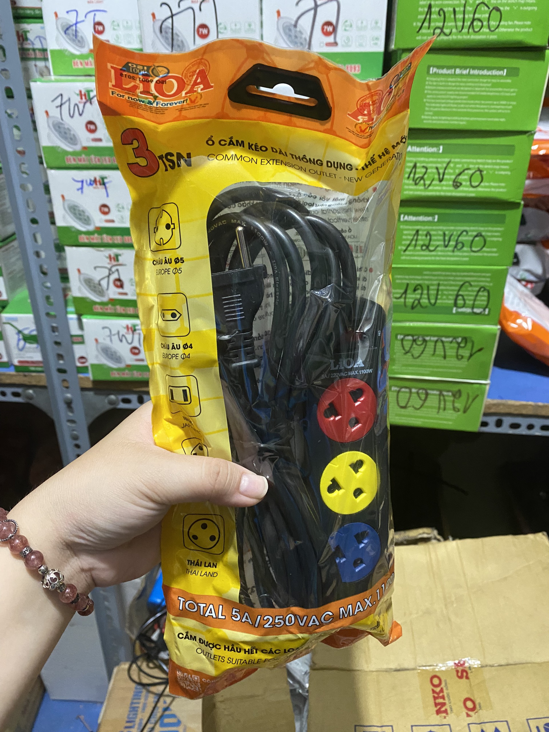 Ổ cắm 6TS, hơn 100k, có cả phi 4 và phi 5, nhưng cắm ko vừa rất nhiều món đồ điện trong nhà mình như laptop (sạc 3 chân), nồi cơm điện (sạc 2 chân), ấm siêu tốc, quạt sưởi điện mua từ Tiki. Rút kinh nghiệm sau này lên cửa hàng LiOA trên *** mua được nhiều loại ổ cắm giá rẻ hơn mà cắm gì cũng được