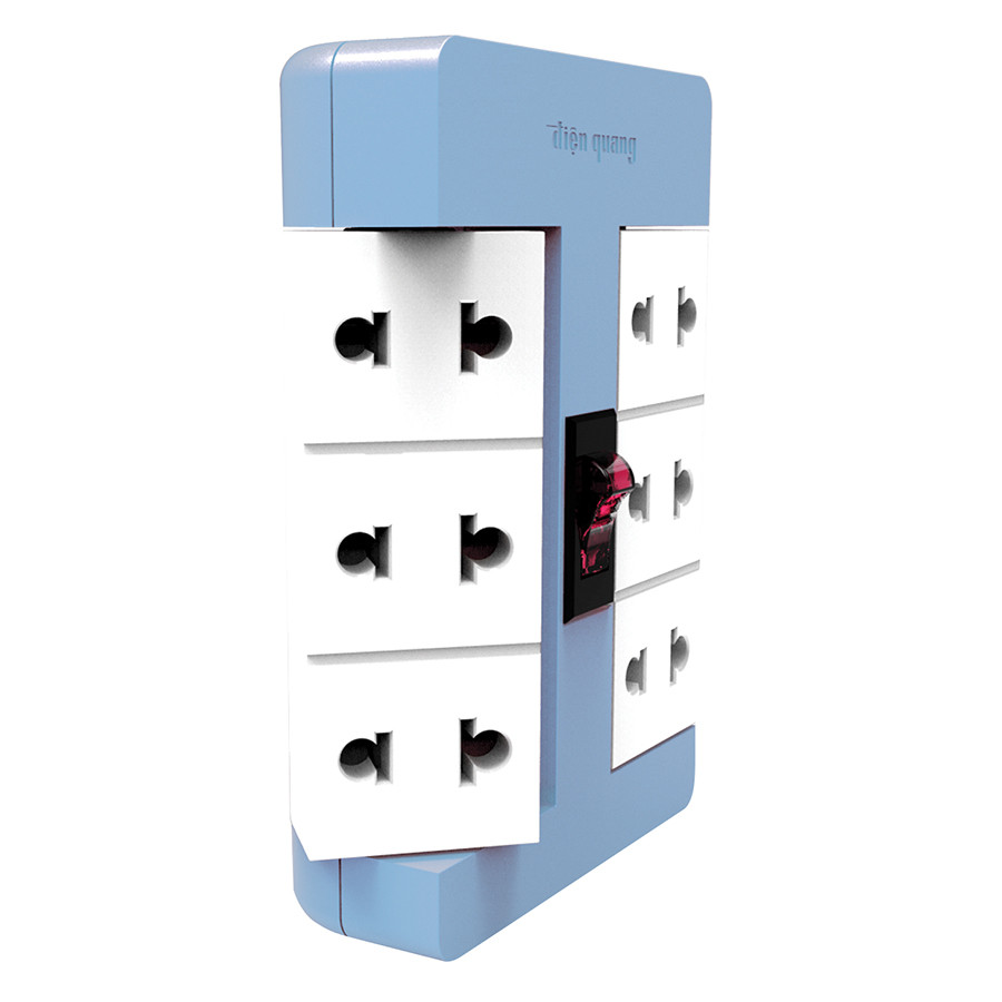 - Ổ Cắm Xoay 90º Điện Quang ĐQ ESK RT 6BW (6 Lỗ, Màu Xanh Trắng) được làm bằng nhựa đạt các tiêu chuẩn về chống cháy và chịu nhiệt.