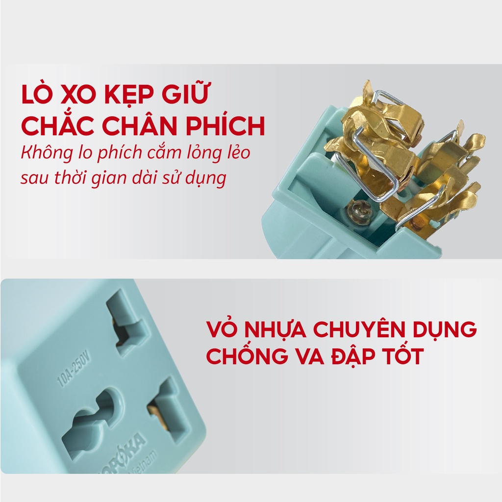 Ổ chia điện đầu nối thông minh P15 SOPOKA 1 chia 2 cửa có ổ cắm 3 chấu tiện lợi: