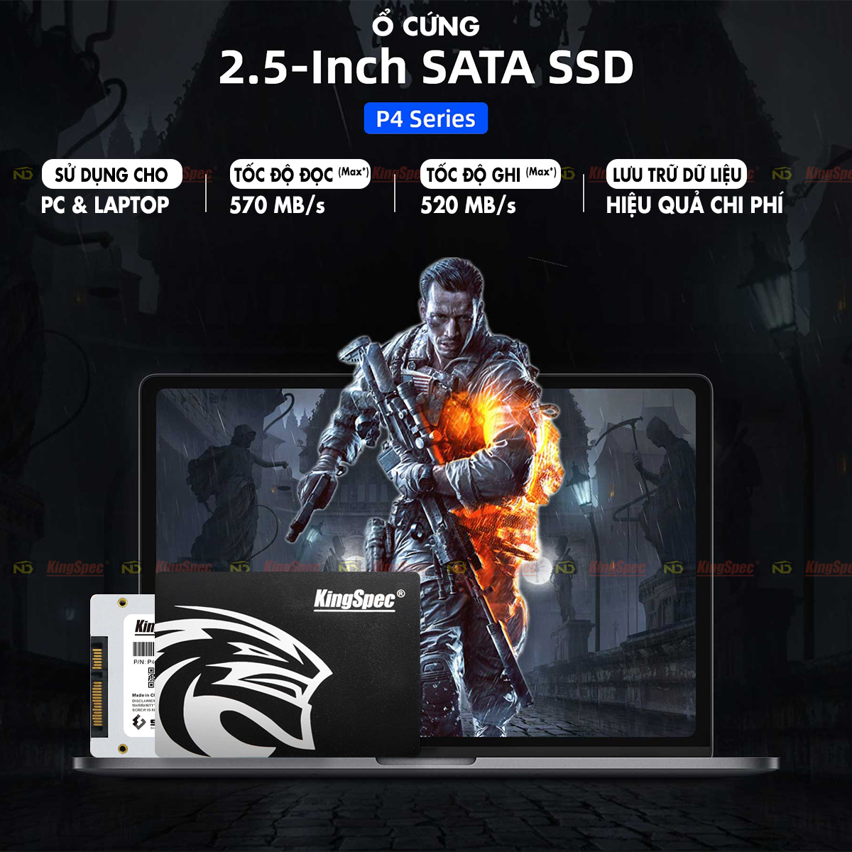 Ổ cứng SSD KingSpec P4 240GB - Mới [Hàng Chính Hãng] - 240GB. SSD kích thước 2.5", chuẩn kết nối SATA, tốc độ đọc ghi lần lượt là: Read Speed 570Mb/s, Write Speed 520Mb/s.