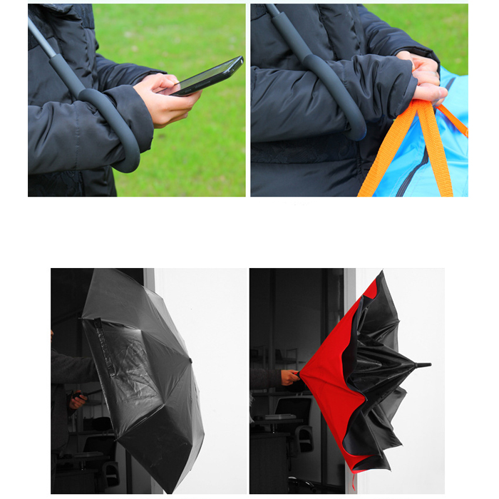 - Thiết kế rảnh tay: Tay dù được thiết kế kiểu dù gấp ngược giúp bạn rảnh tay để dùng cả 2 tay vào việc khác (sử dụng điện thoại, nhắn tin, lướt web, bồng em bé, bưng bê đồ cồng kề) mà không lo dù rớt hoặc bay mất.