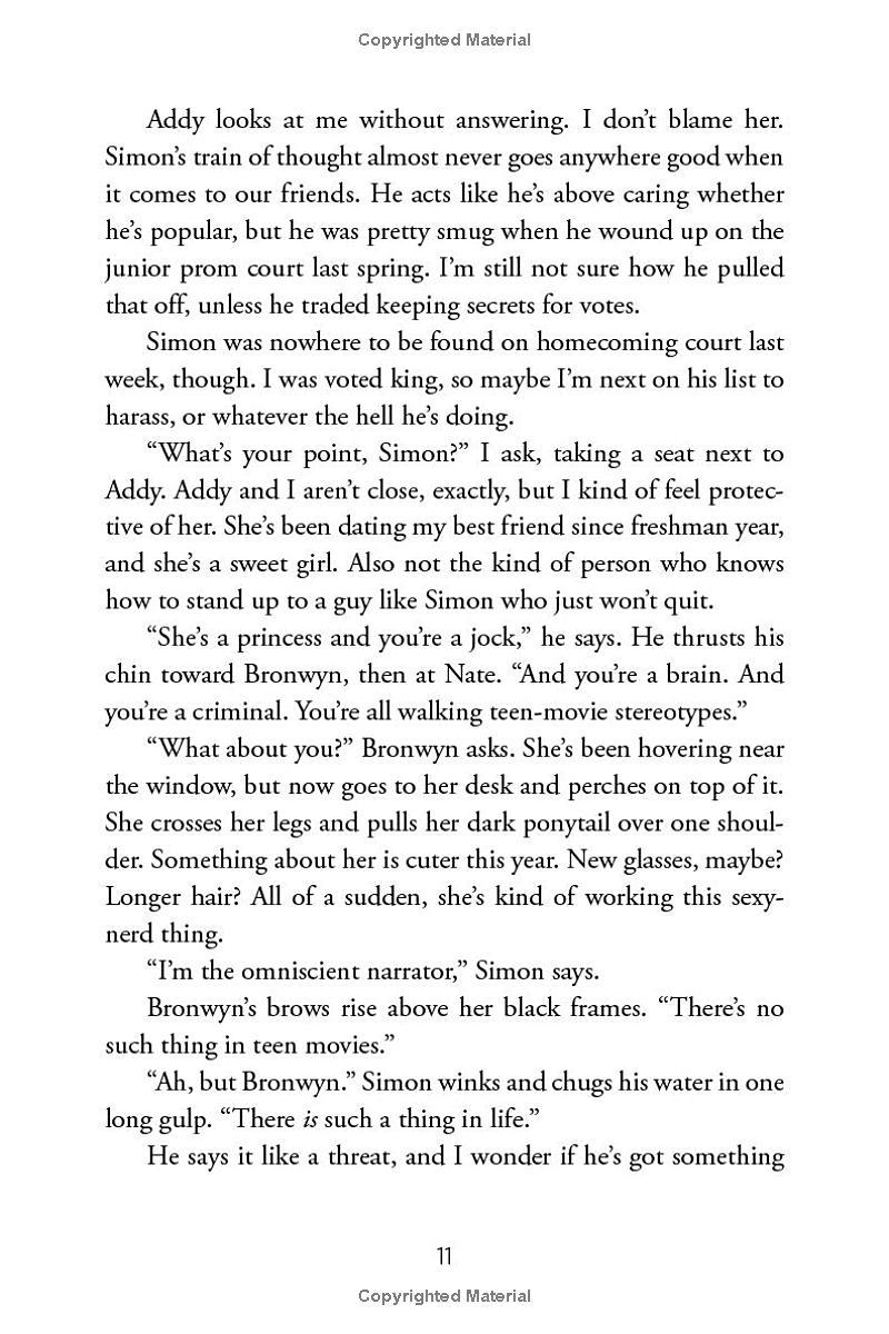 Only, Simon never makes it out of that classroom. Before the end of detention Simon's dead. And according to investigators, his death wasn’t an accident. On Monday, he died. But on Tuesday, he’d planned to post juicy reveals about all four of his high-profile classmates, which makes all four of them suspects in his murder. Or are they the perfect patsies for a killer who’s still on the loose?