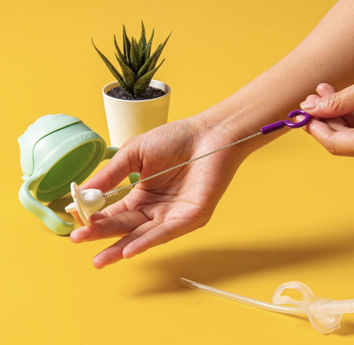 - Cây cọ rửa được làm từ chất liệu thép không gỉ, đầu cọ thiết kế như hình nón làm sạch ống hút nhẹ nhàng, hiệu quả. Có móc treo tiện lợi.