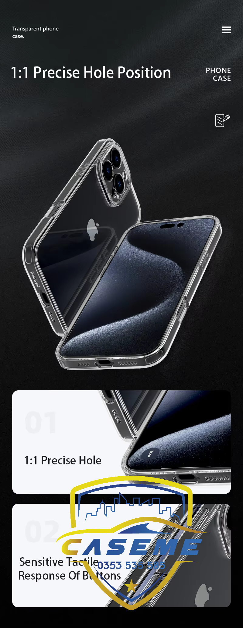 ● Mặt lưng PC cứng trong suốt chống va đập, không ố màu.