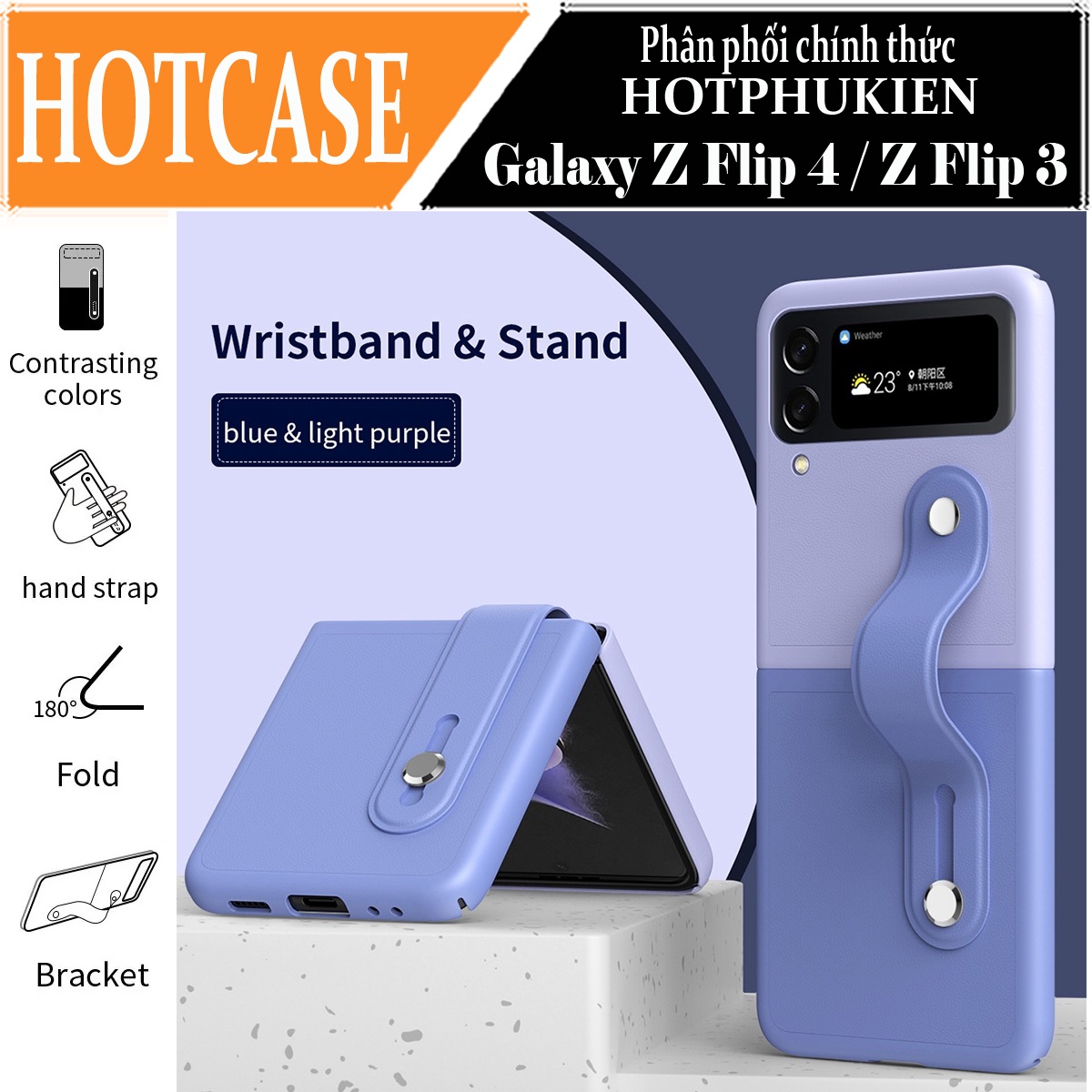 Ốp lưng đai đeo hand trap chống sốc cho Samsung Galaxy Z Flip 3 / Z Flip 4 hiệu HOTCASE Wristband Stand Phone Case - chất liệu cao cấp, thiết kế thời trang sang trọng có đai đeo tay an toàn