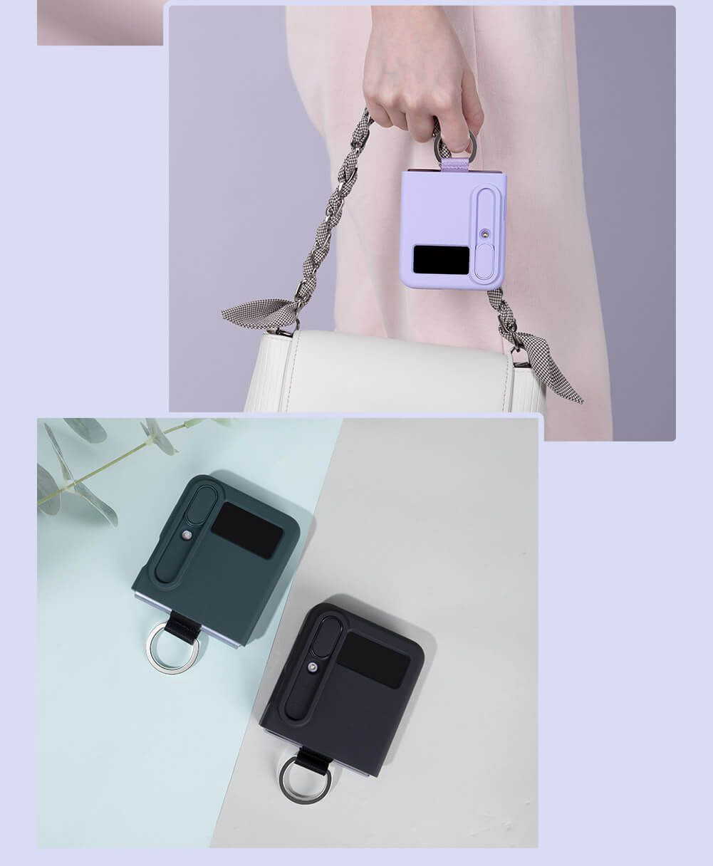 Ốp lưng cho Samsung Galaxy ZFlip 4 chống sốc bảo vệ Camera hiệu Nillkin Camshield Silky Silicon Case Được làm bằng vật liệu silicon cao cấp được thiết kế với dây đeo dạng iring vòng kim loại giúp bạn dễ dàng cằm nắm không bị rơi rớt và dễ dàng sử dụng bằng 1 tay.