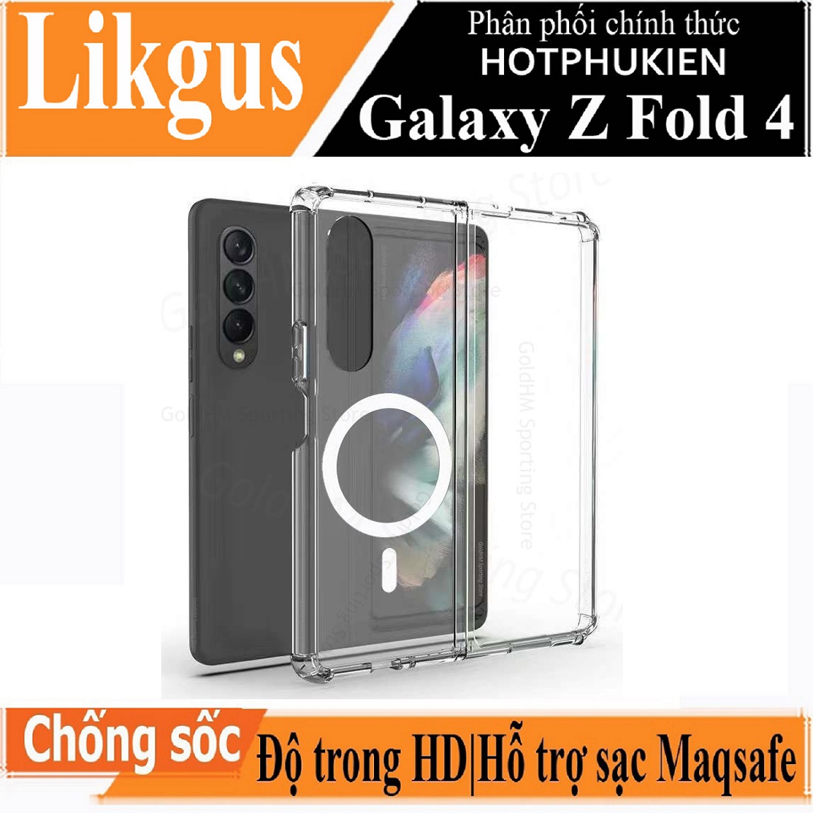 Ốp lưng chống sốc trong suốt hỗ trợ sạc Maqsafe cho Samsung Galaxy Z Fold 4 hiệu Likgus Maqsafe Magetic Case siêu mỏng 1.5mm, độ trong tuyệt đối, chống trầy xước, chống ố vàng, tản nhiệt tốt