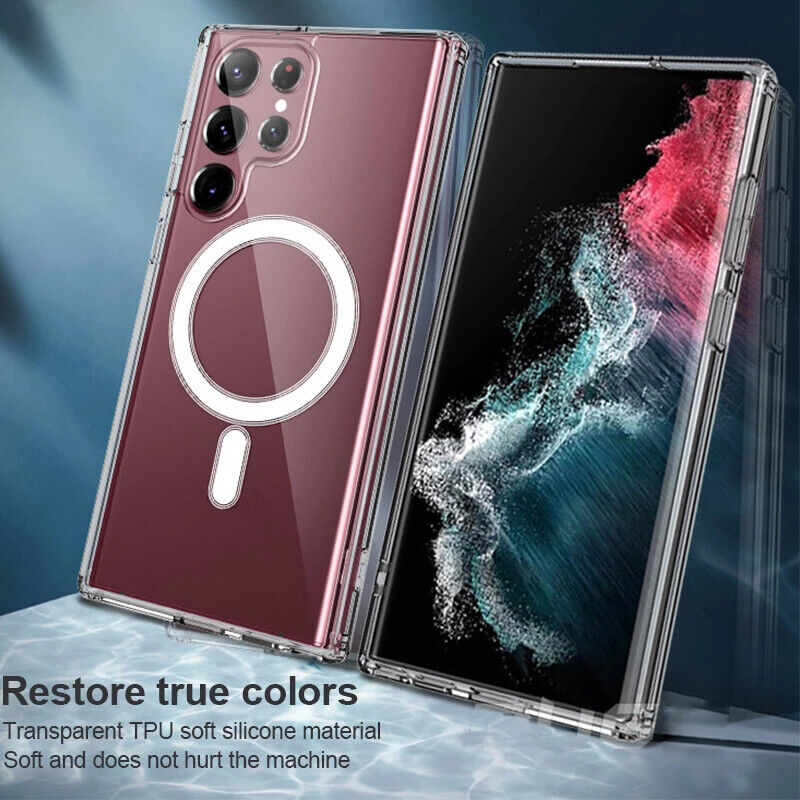 Ốp lưng cho Samsung Galaxy S23 / Galaxy S23+ / S23 Plus / Galaxy S23 Ultra chống sốc siêu mỏng 1.5mm Hiệu HOTCASE Maqsafe Magetic Case thiết kế với phần mặt lưng trang bị lớp Nam châm giúp chiếc cho Samsung Galaxy S23 / Galaxy S23+ / S23 Plus / Galaxy S23 Ultra của bạn được gắn chính xác vào bộ sạc nhanh không dây và bạn nên lưu ý không được bẻ mạnh ốp lưng để tránh ảnh hưởng đến nam châm phía sau nhé.