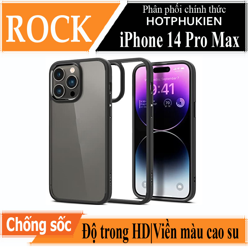 Ốp lưng chống sốc viền cao su cho iPhone 14 Pro Max (6.7 inch) mặt lưng trong suốt Hiệu Rock hybrid Protective Case Nổi bật hơn các dòng ốp lưng khác trên thị trường nhờ chất liệu silicon case cao cấp, với độ mỏng và nhẹ đem lại cảm giác “ốp mà như không ốp”.