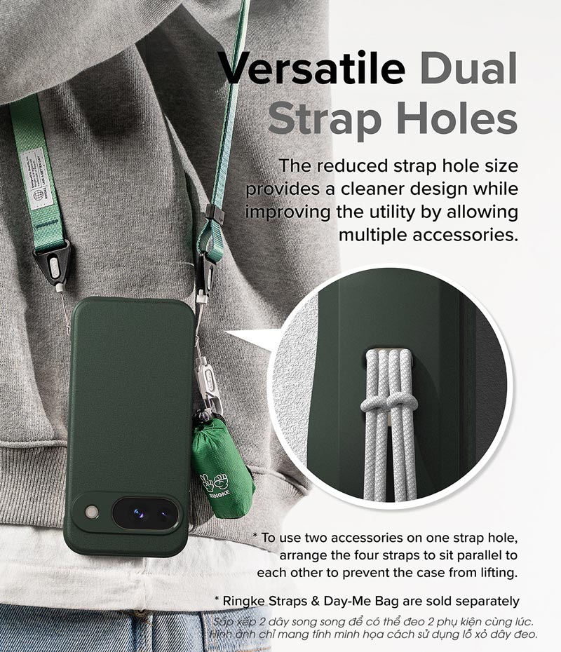 - Kích thước lỗ xỏ dây đeo cải tiến cho phép treo (móc) được 2 phụ kiện cùng lúc. Lưu ý: dây đeo được bán riêng. Hình ảnh chỉ minh họa cách sử dụng sản phẩm.