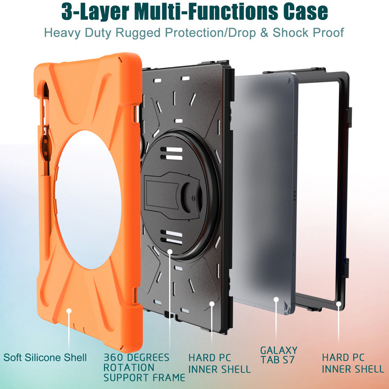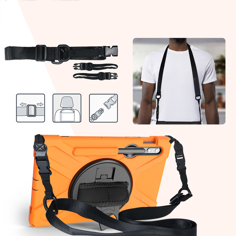 Mô tả sản phẩm Ốp lưng Samsung Galaxy Tab S9/S9 FE/S9 Plus/S9 Plus FE/S9 Ultra/Tab S8 Plus/S8 Ultra/S7 Plus chống sốc dựng máy có dây đeo vai và tay