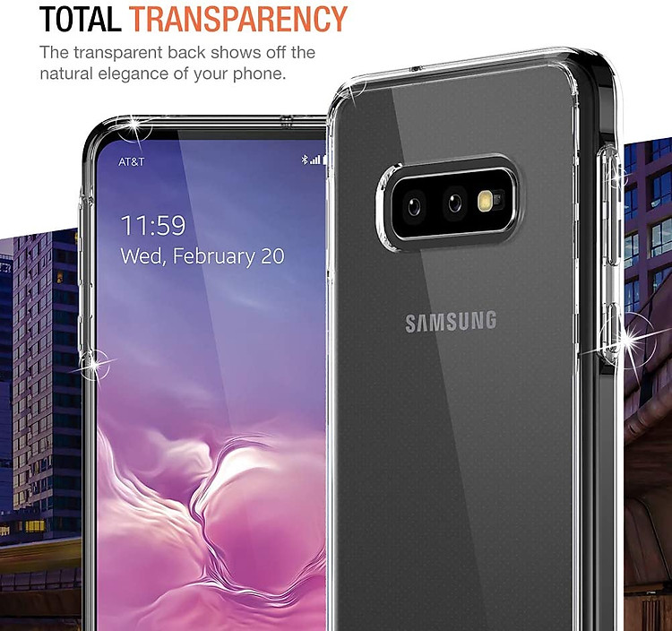 - Toàn bộ thiết kế sang trọng đẳng cấp của Samsung Galaxy S10e đều được phô bày khi bạn sử dụng ốp lưng trong suốt.