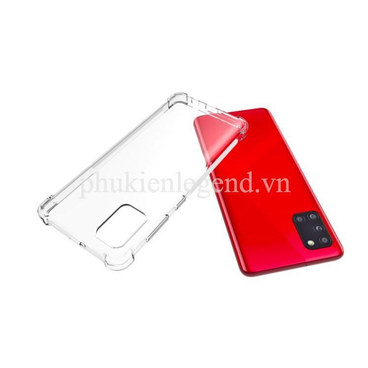 Ốp lưng dẻo trong chống sốc dành cho SamSung Galaxy A31 chất liệu TPU dày 0.9 mm, mềm dẻo, trong suốt, có độ đàn hồi cao, có thể bóp lại, cuộn lại mà không biến dạng. Ốp lưng được thiết kế với 4 góc dày dặn hơn (hầu hết khi rơi máy các góc sẽ va chạm đầu tiến), kết hợp với phần khung viền từ nhựa dẻo TPU cao cấp khá dầy dặn (~1mm), phần tiếp xúc với cạnh máy có làm thêm các đường gân không những giúp cho ốp cầm chắc tay hơn mà còn tăng khả năng đàn hồi, bảo vệ toàn bộ máy luôn an toàn trước mọi va chạm, mặt lưng còn 4 chấu nhỏ nhô cao để nâng phần lưng của máy lên khi để lên bàn hạn chế xước Camera sau của máy. Mọi chi tiết hoàn thiện của ốp lưng đều làm rất đẹp, các vết cắt mịn, đều. Các phím bấm được làm nổi giúp thao tác dễ dàng.