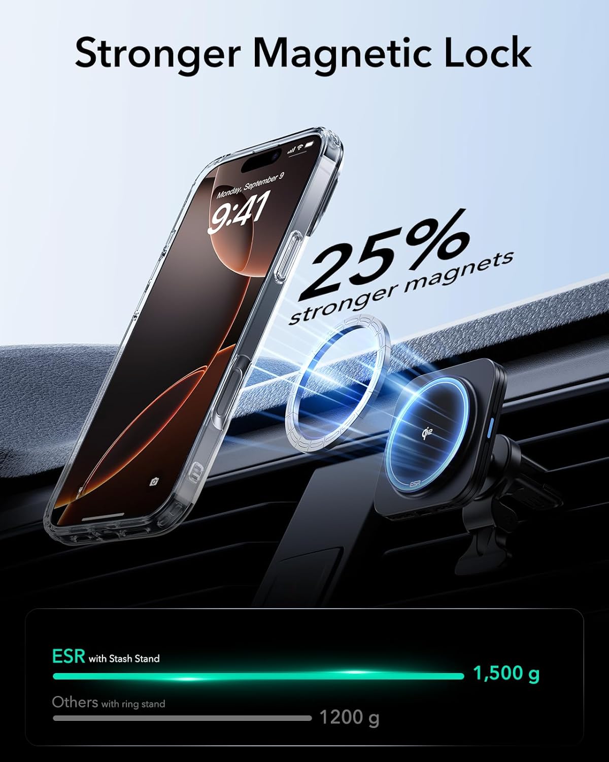 - Khóa từ mạnh hơn: nam châm tích hợp mạnh mẽ với lực giữ 1.500 g cho phép sạc không dây nhanh hơn, dễ dàng hơn và khóa an toàn trên bất kỳ phụ kiện Mag nào