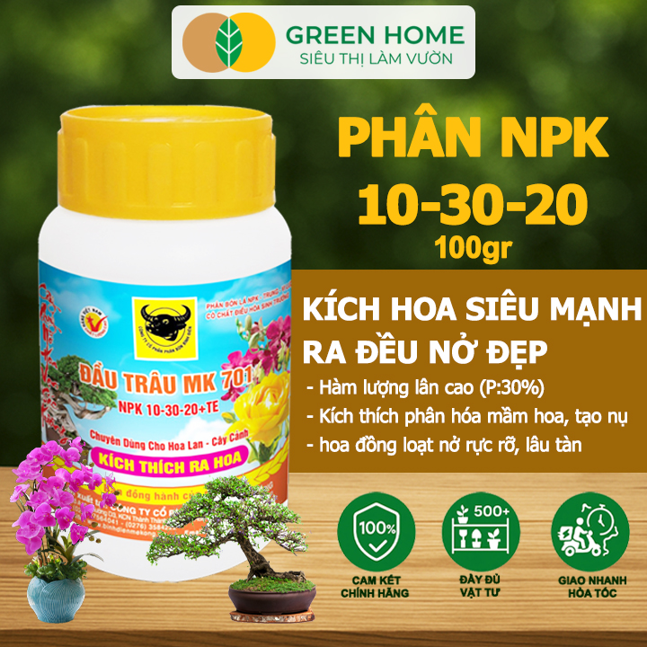 Thông số kỹ thuật Phân Bón Lá Đầu Trâu MK 501-701-901, GreenHome,Chai 100GR,Đặc Biệt Dành Cho Hoa Lan Và Cây Cảnh
