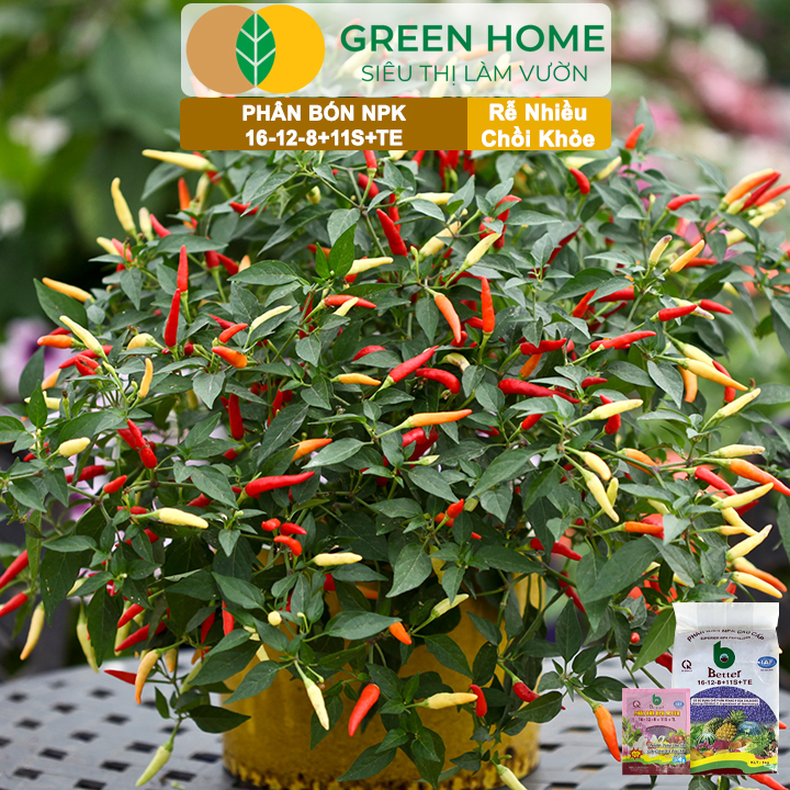 Thông số kỹ thuật Phân bón NPK 16-12-8-11S+TE Greenhome, Better, Bao 1kg, Phát Triển Nhanh Thân, Cành, Lá, Bộ Rễ