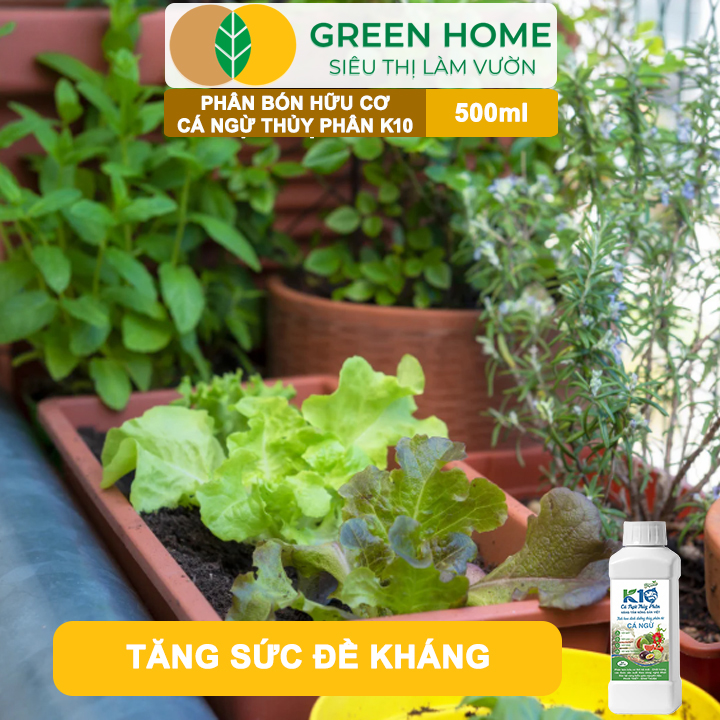 Phân Đạm Cá Hữu Cơ Sinh Học GreenHome, Dịch Cá Biển Thủy Phân K10, Chai 500ml, Hàm Lượng Dinh Dưỡng Cao, Thế Hệ Mới, Công Nghệ Nhật Bản
