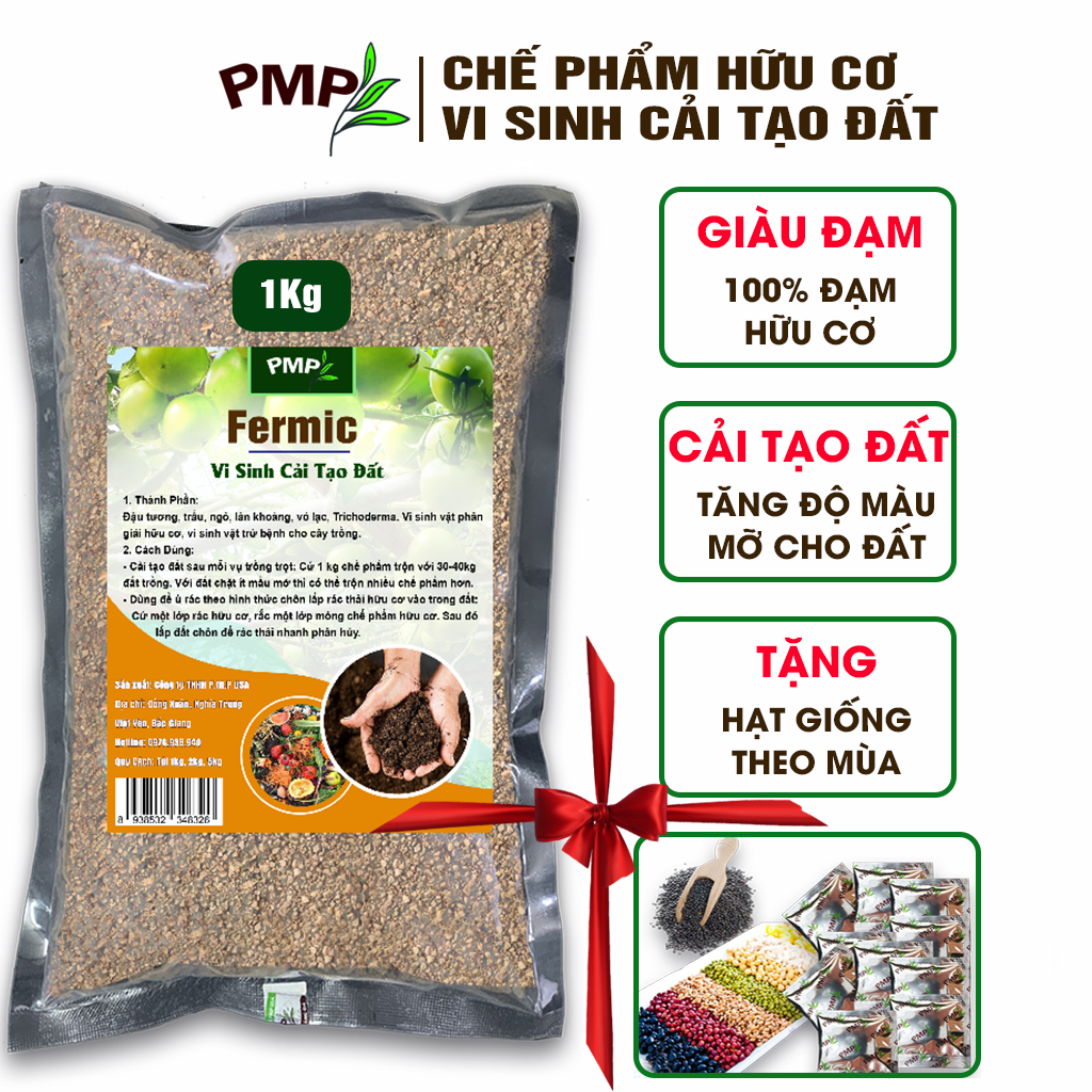 Thông số kỹ thuật vi sinh Fermic PMP giúp cải tạo đất, tăng độ màu mỡ, phì nhiêu cho đất 1kg, 2kg