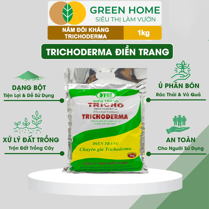 Thông số kỹ thuật Nấm Đối Kháng Trichoderma Greenhome, Điền Trang, Bao 1kg, Ủ Phân Hữu Cơ, Ủ Rác, Đậu Tương, Khử Mùi, Cải Tạo Đất
