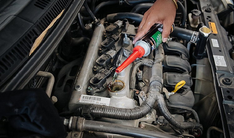 - Bước 2: đổ trực tiếp vào nhớt cũ (chuẩn bị thay nhớt mới)