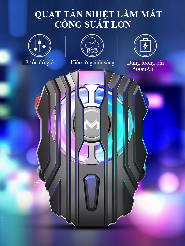 - Cơ chế tản nhiệt gió, làm mát hiệu quả với quạt công suất cao, giảm nhiệt đáng kể cho điện thoại trong khi chơi game