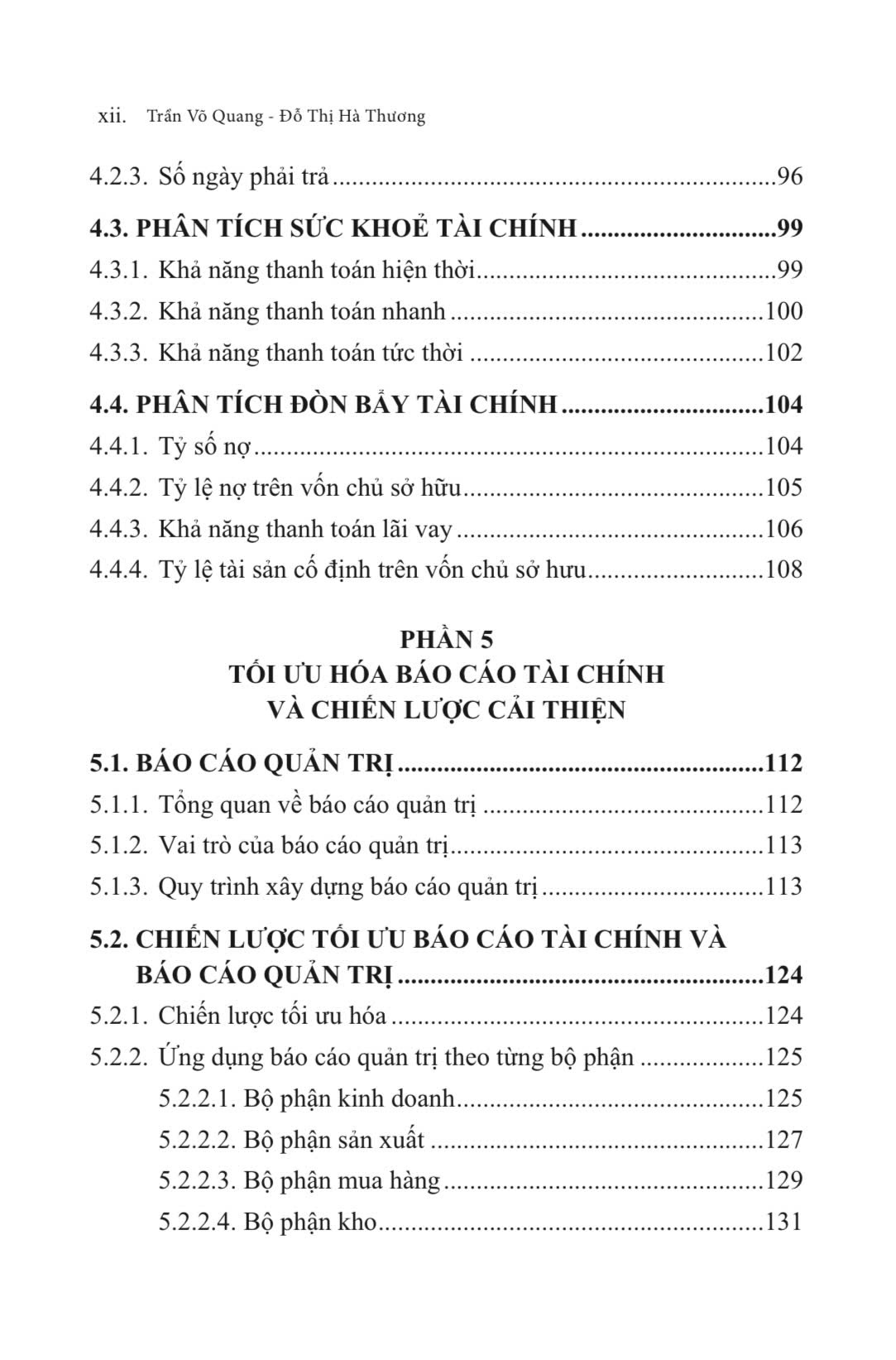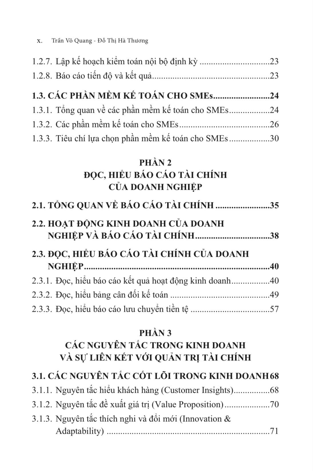 Cuốn sách này được xây dựng theo một lộ trình rõ ràng, từ việc chuẩn hóa dữ liệu và hệ thống kế toán, hiểu các nguyên tắc tài chính trong kinh doanh, đến hướng dẫn đọc, hiểu báo cáo tài chính và phân tích tài chính để đưa ra các quyết định chính xác. Tiếp theo, bạn sẽ học cách cải thiện báo cáo tài chính, quản lý chi phí và phân tích điểm hòa vốn, nhằm tối ưu lợi nhuận. Bên cạnh đó, cuốn sách giúp bạn lập kế hoạch dòng tiền, đảm bảo doanh nghiệp không còn nỗi lo thiếu tiền. Cuối cùng, cuốn sách cung cấp các công cụ và checklist thực tế, dễ áp dụng cho các doanh nghiệp nhỏ và vừa, giúp bạn áp dụng nhanh chóng các kiến thức tài chính vào thực tiễn nhằm nâng cao hiệu quả quản lý tài chính trong doanh nghiệp.