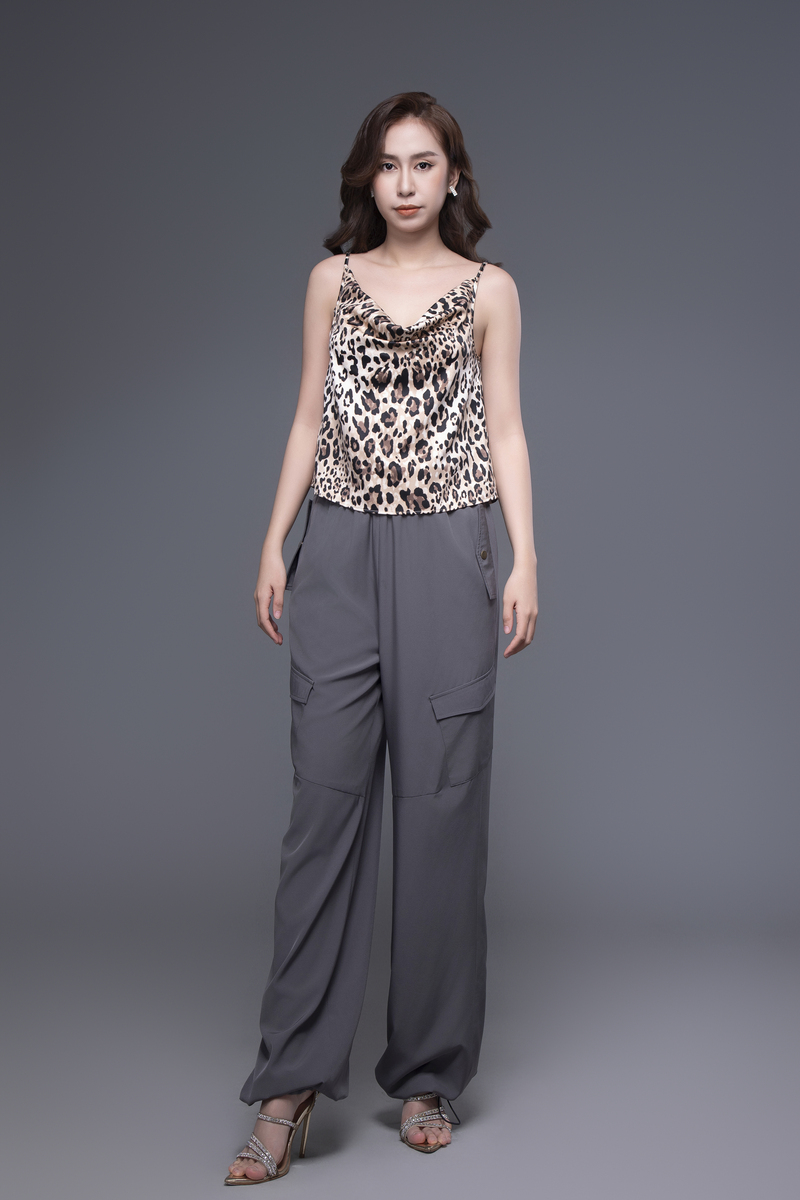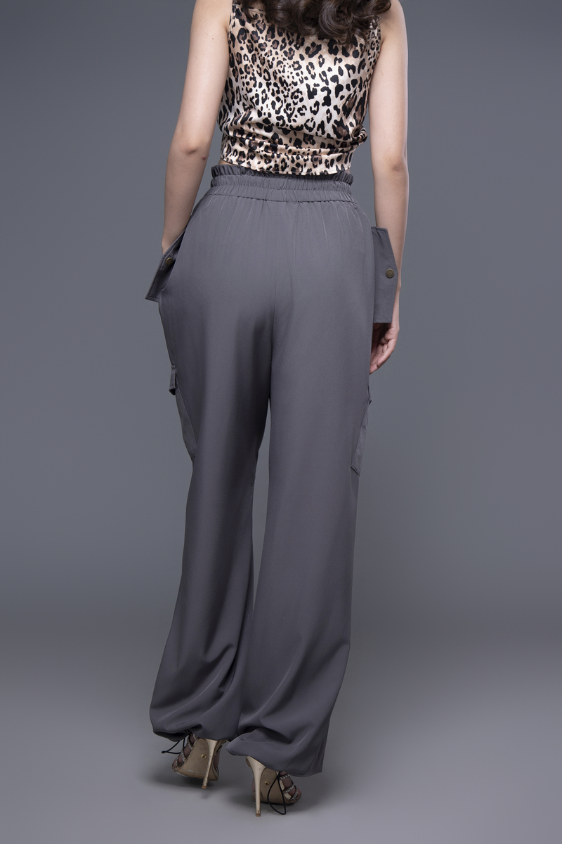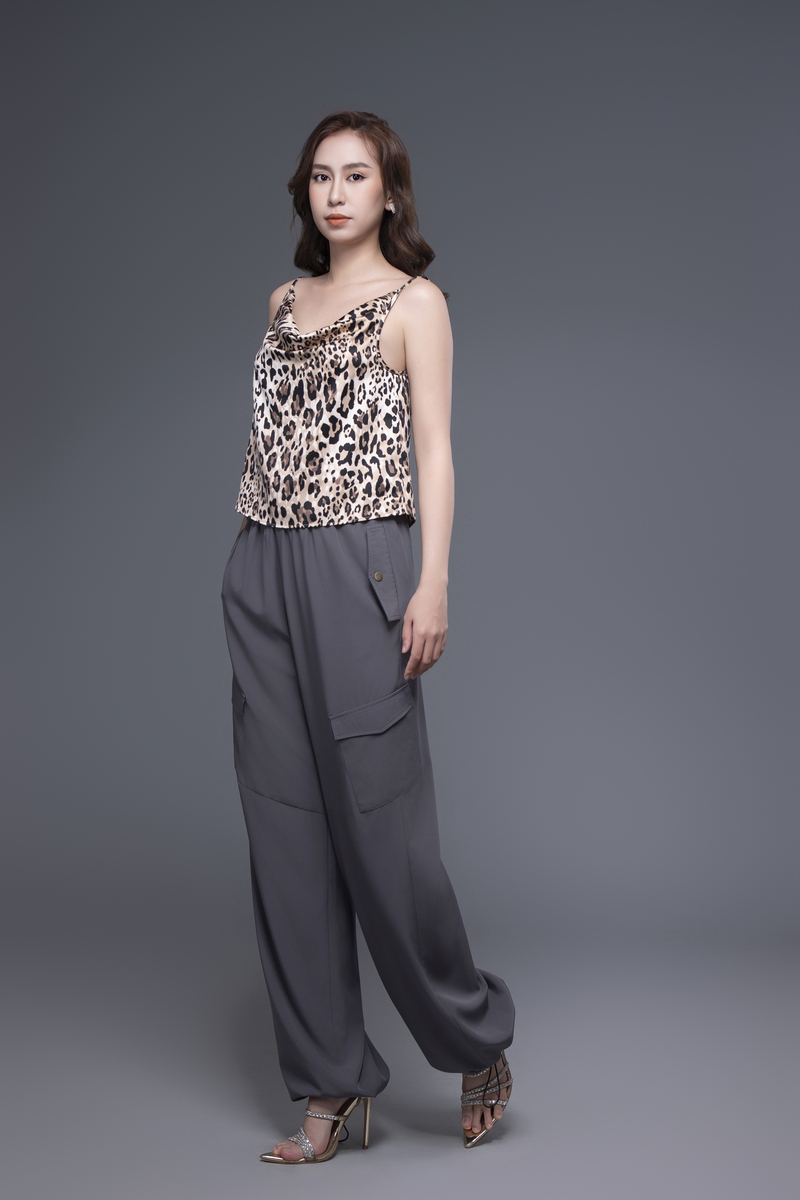 Thông số kỹ thuật Quần nữ xen lụa xám đậm túi hộp rút ống