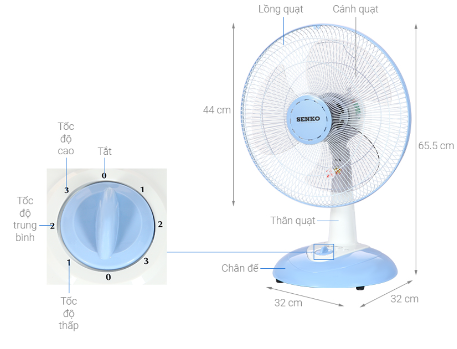 Thông số kỹ thuật Quạt bàn B4 Senko B1612 - Giao màu ngẫu nhiên - Hàng Chính Hãng