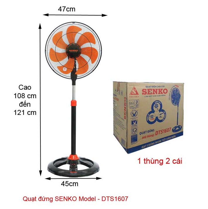 Thông số kỹ thuật Quạt Đứng Thân Sắt F32 Senko DTS1607 - Màu ngẫu nhiên - Hàng Chính Hãng