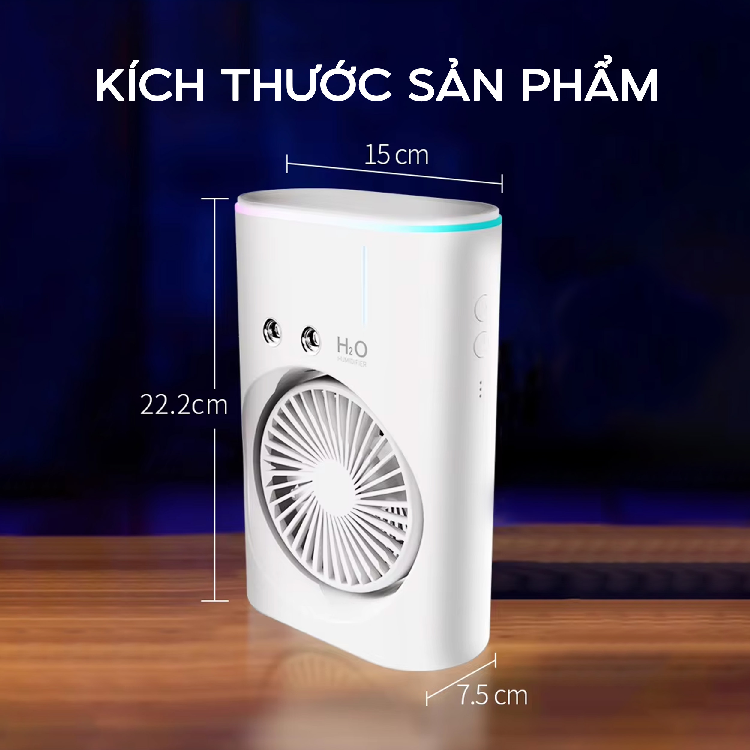 -Thời gian sử dụng : lên tới 8 giờ chỉ dùng quạt ở mức nhỏ nhất và 3-4 giờ liên tục nếu vừa bật quạt và phun hơi nước. Thời gian sử dụng thực tế có thể thay đổi tuỳ điều kiện môi trường, độ ẩm, thời tiết, và nhiệt độ