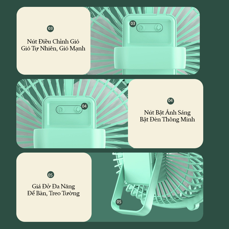 Thông số kỹ thuật Quạt Mini Để Bàn, Quạt Tích Điện Usb Teement, Quạt Cầm Tay 3 Tốc Độ, Tích Hợp Đèn Ngủ, Điều Chỉnh Hướng Gió 180 Độ, Không Gây Ồn, Pin Sạc Dung Lượng Cao - Hàng Chính Hãng
