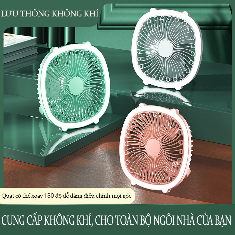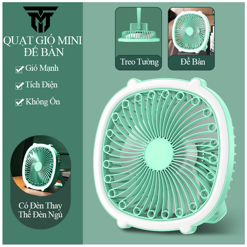 Quạt Mini Để Bàn, Quạt Tích Điện Usb Teement, Quạt Cầm Tay 3 Tốc Độ, Tích Hợp Đèn Ngủ, Điều Chỉnh Hướng Gió 180 Độ, Không Gây Ồn, Pin Sạc Dung Lượng Cao - Hàng Chính Hãng