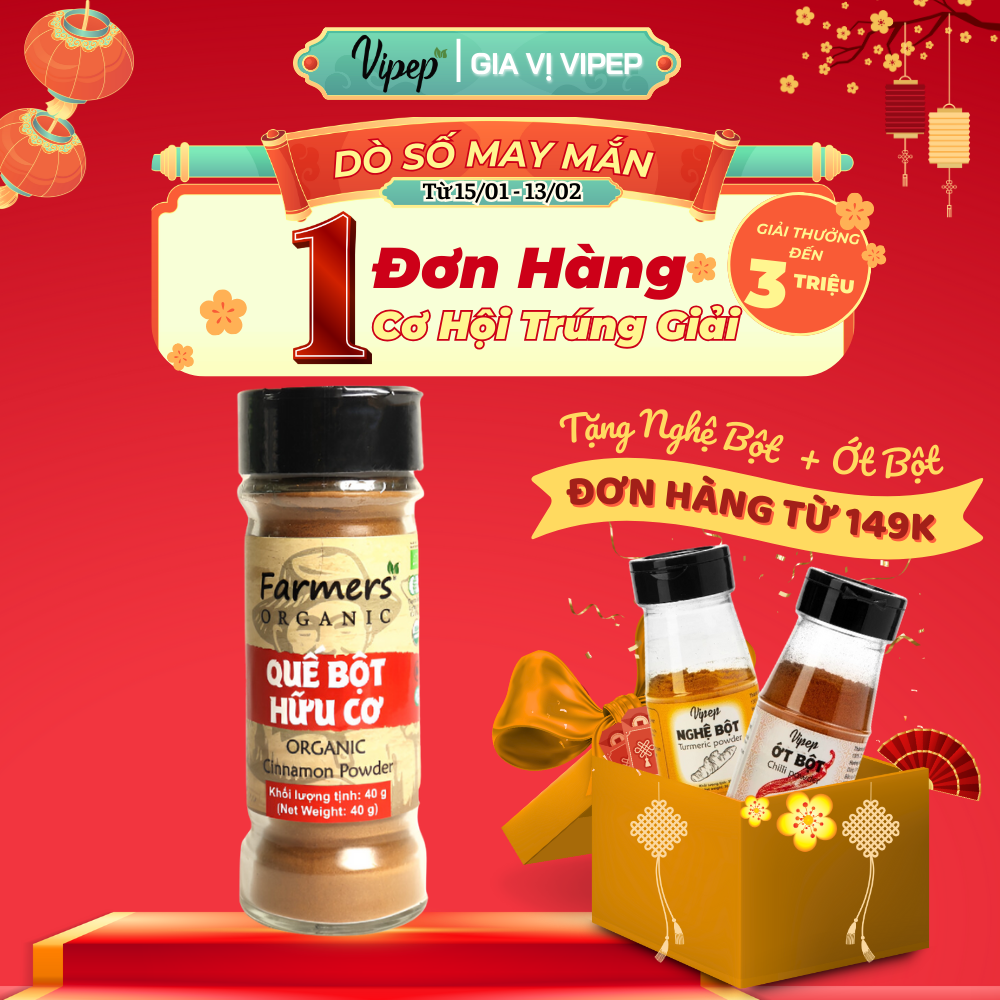 Thông số kỹ thuật Quế Bột Farmers' Organic Vipep Hũ Thủy Tinh 40g